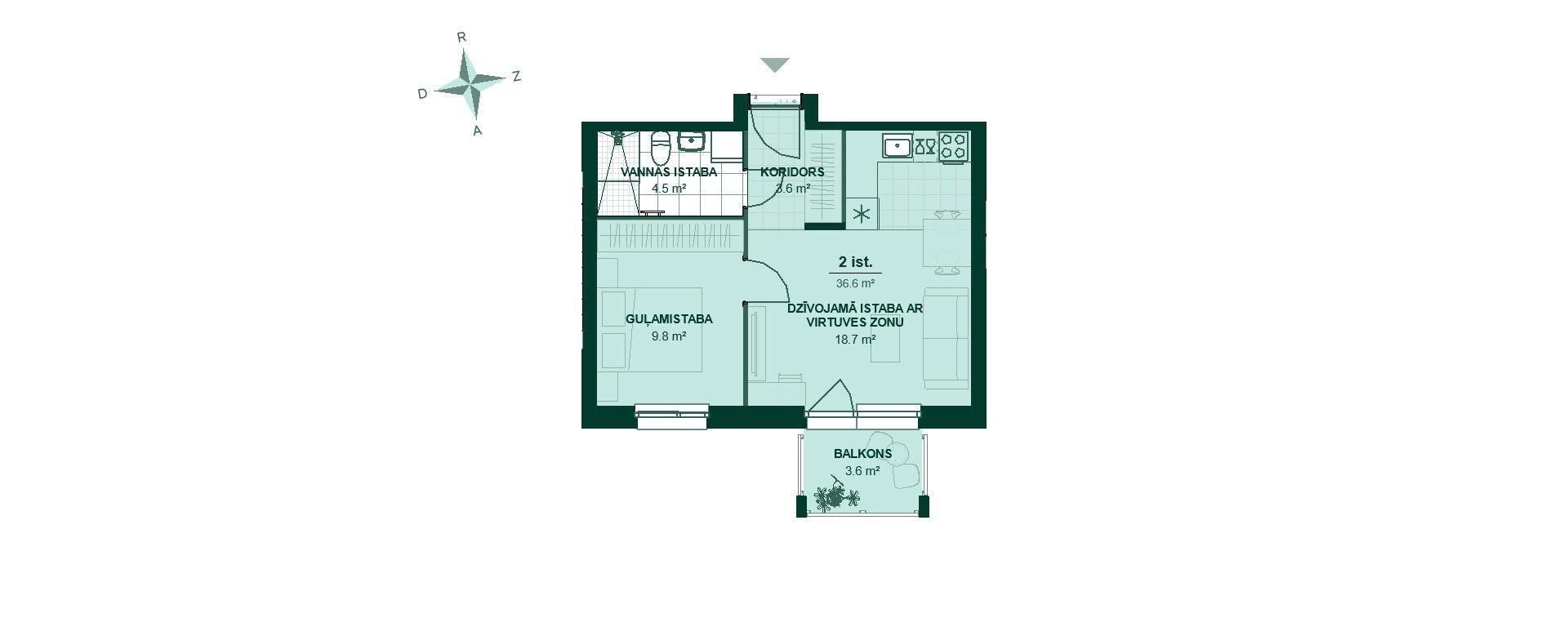 Mazā Robežu 3-58, 2 -istabu dzīvoklis, Platība 40,2 m²