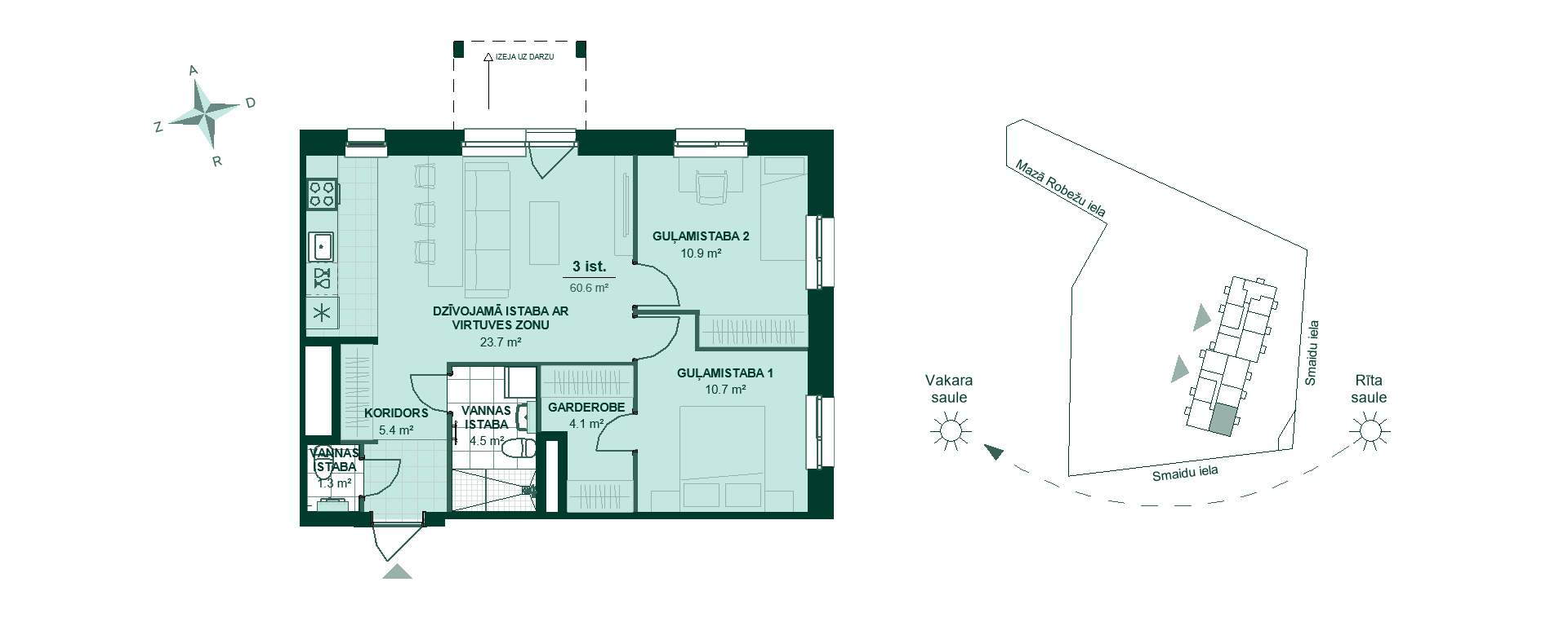 Mazā Robežu 1-38, 3 комнаты, 60,6 м²