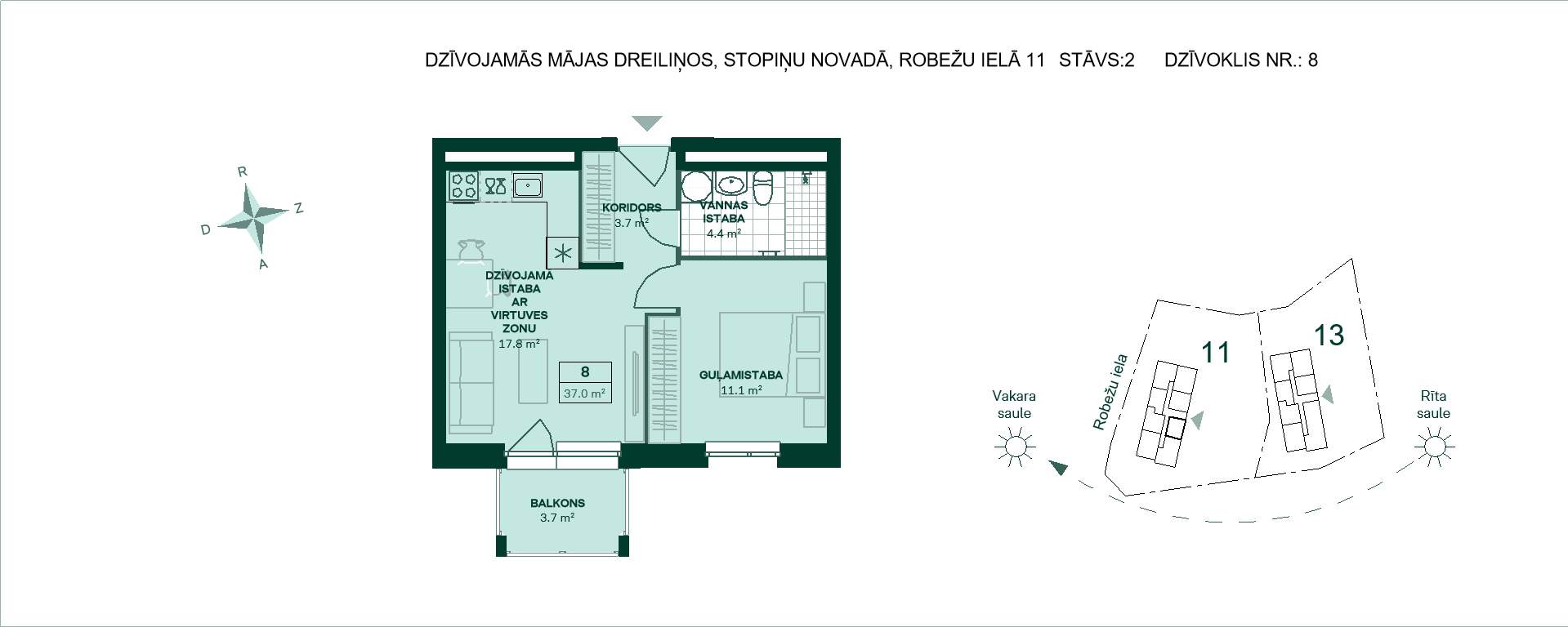 Robežu 11-08, 08, 2 комнаты, 40,1 м²