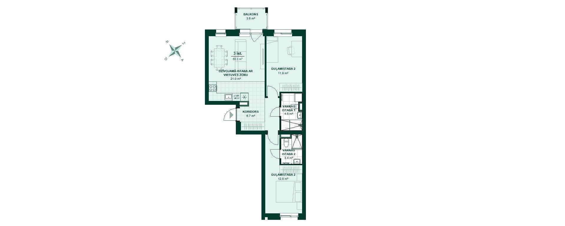 Ropažu iela 16B - 45, 3 комнаты, 63,9 м²