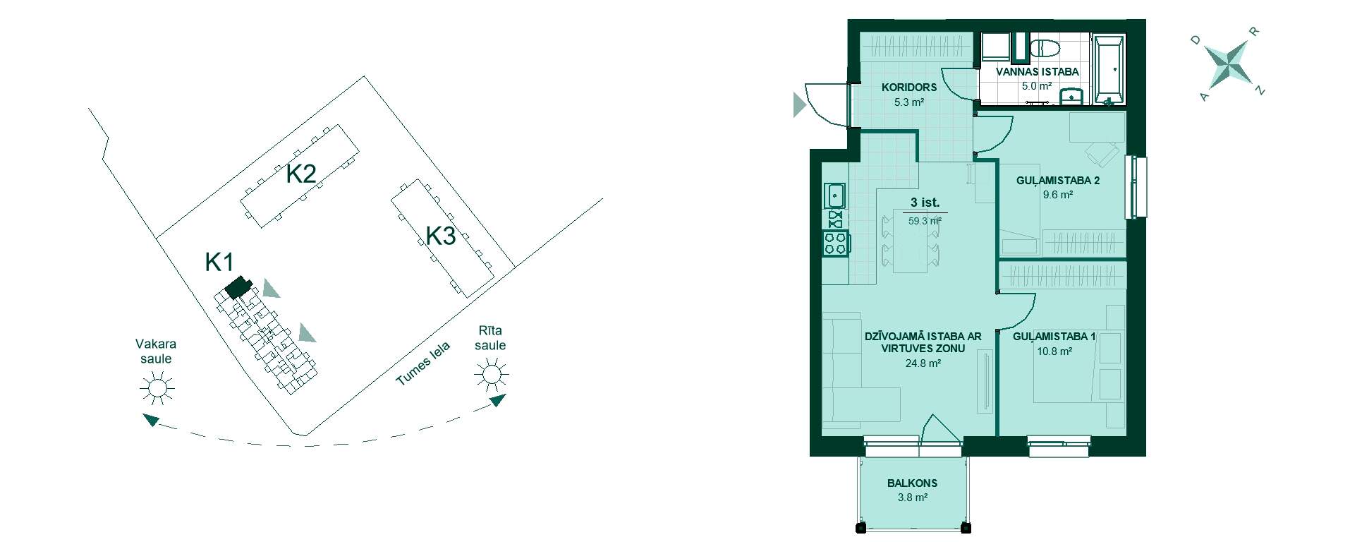 Tumes 27 K1-39, 138 000 €, 3 комнаты, 59,5 м²