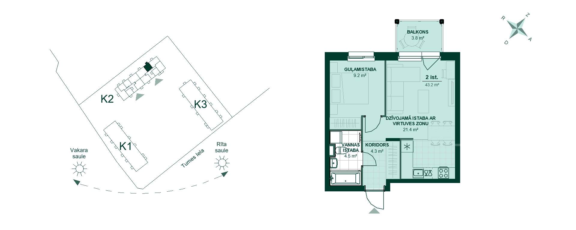 Tumes 27 K2-63, 108 000 €, 2 комнаты, 43,3 м²
